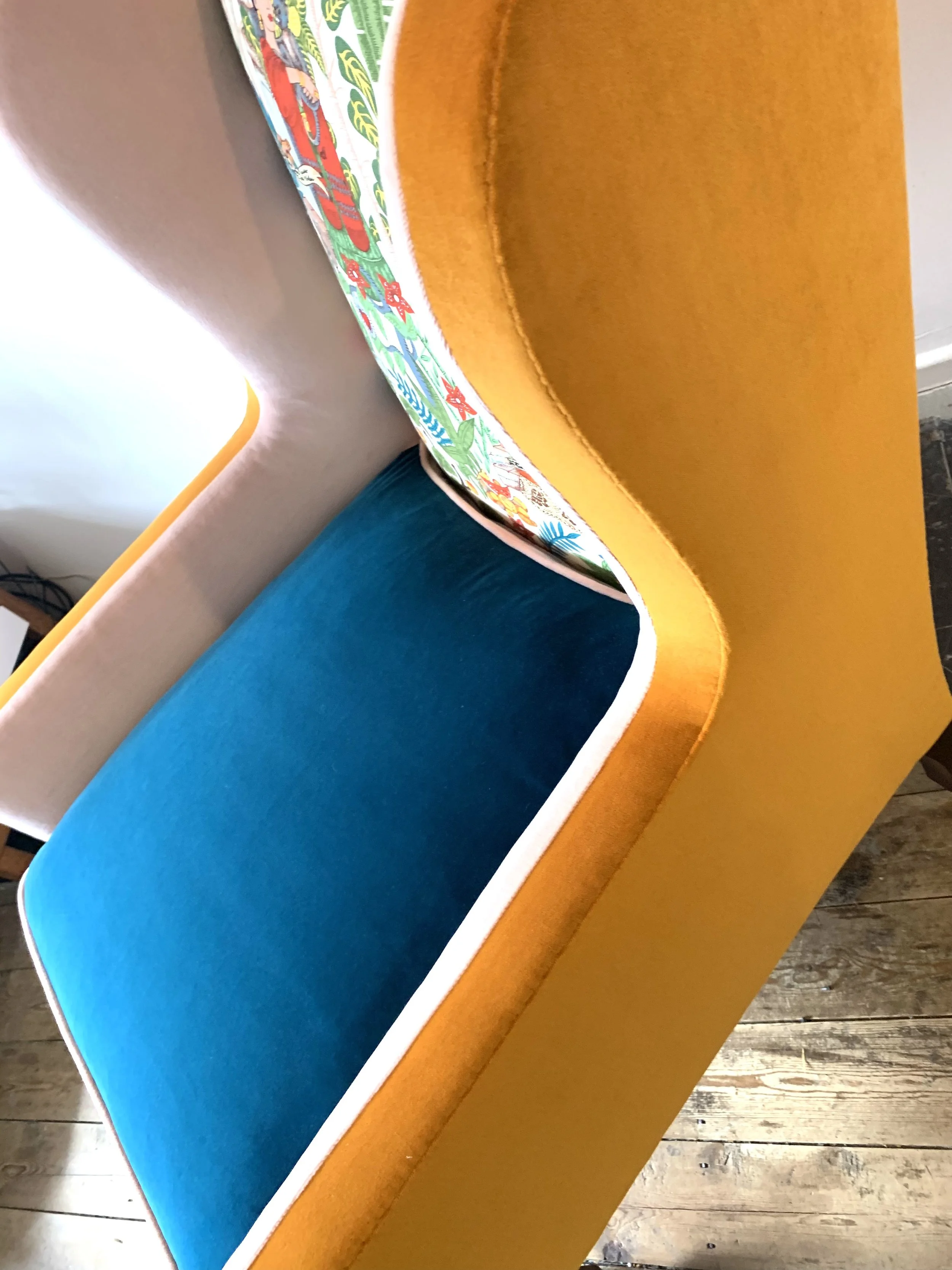 “Inherited a structurally sound but unflatteringly dressed tub chair. Rowena gave it a facelift and fabulous new outfit and I swear it's 10 x more comfy to sit in.”